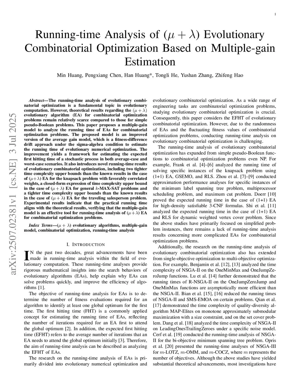 Running-time Analysis of () Evolutionary Combinatorial Optimization Based on Multiple-gain Estimation