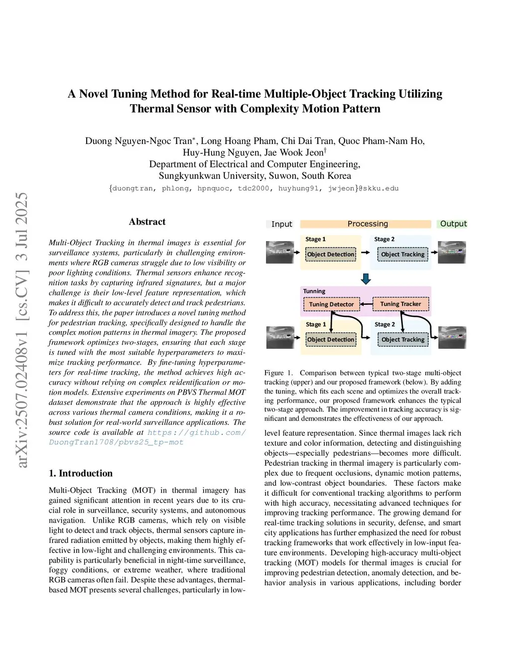 A Novel Tuning Method for Real-time Multiple-Object Tracking Utilizing Thermal Sensor with Complexity Motion Pattern