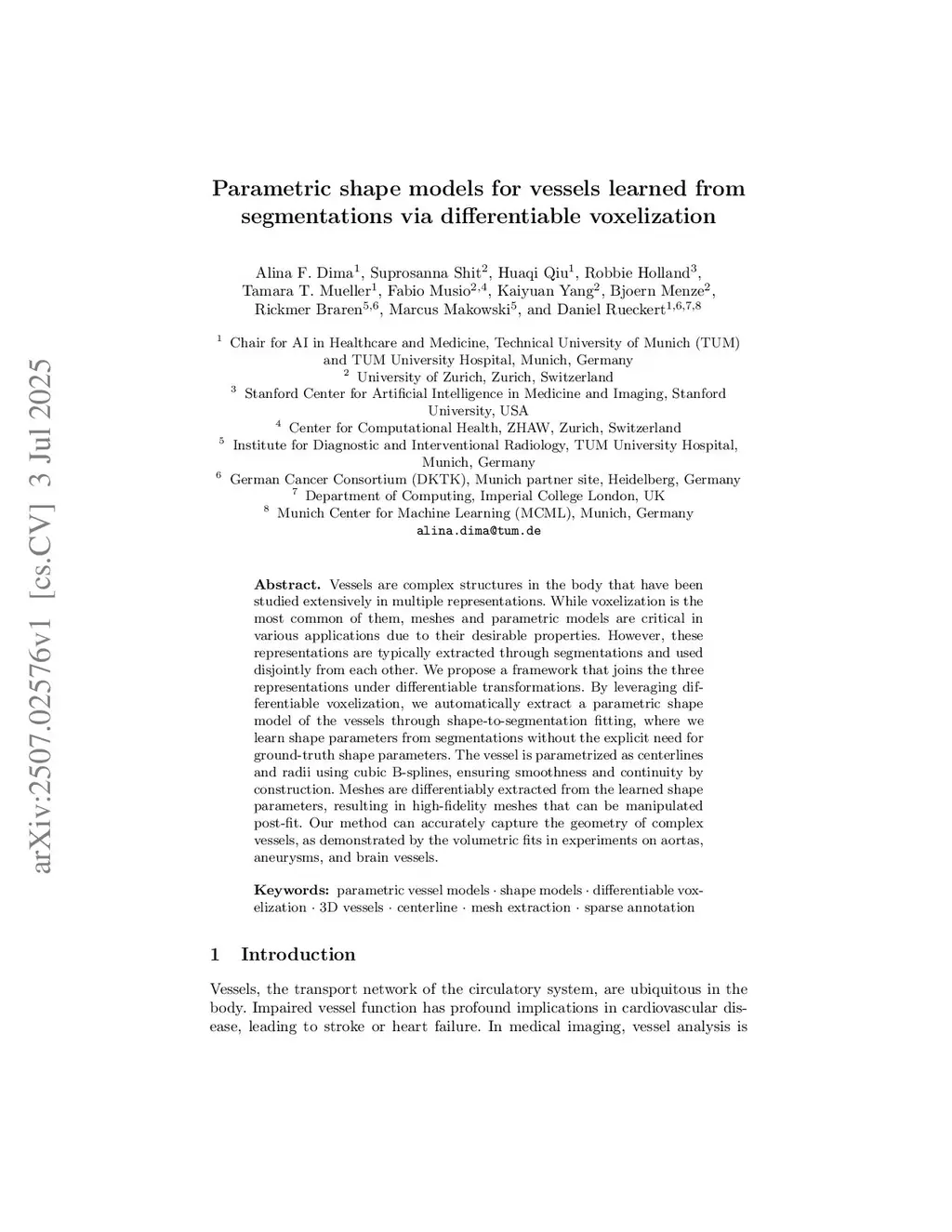 Parametric shape models for vessels learned from segmentations via differentiable voxelization