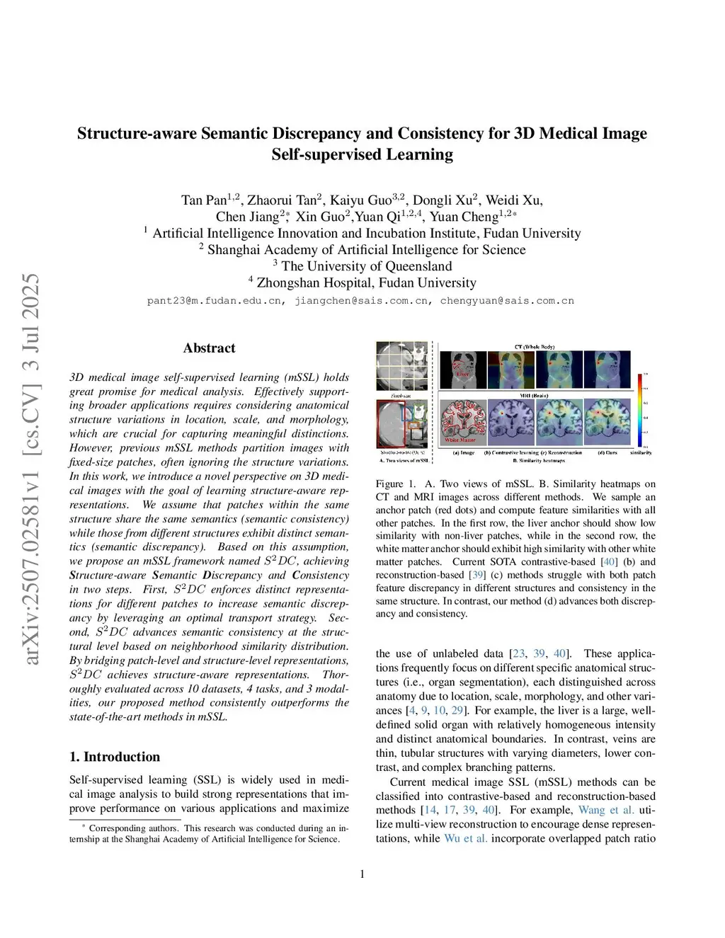 Structure-aware Semantic Discrepancy and Consistency for 3D Medical Image Self-supervised Learning