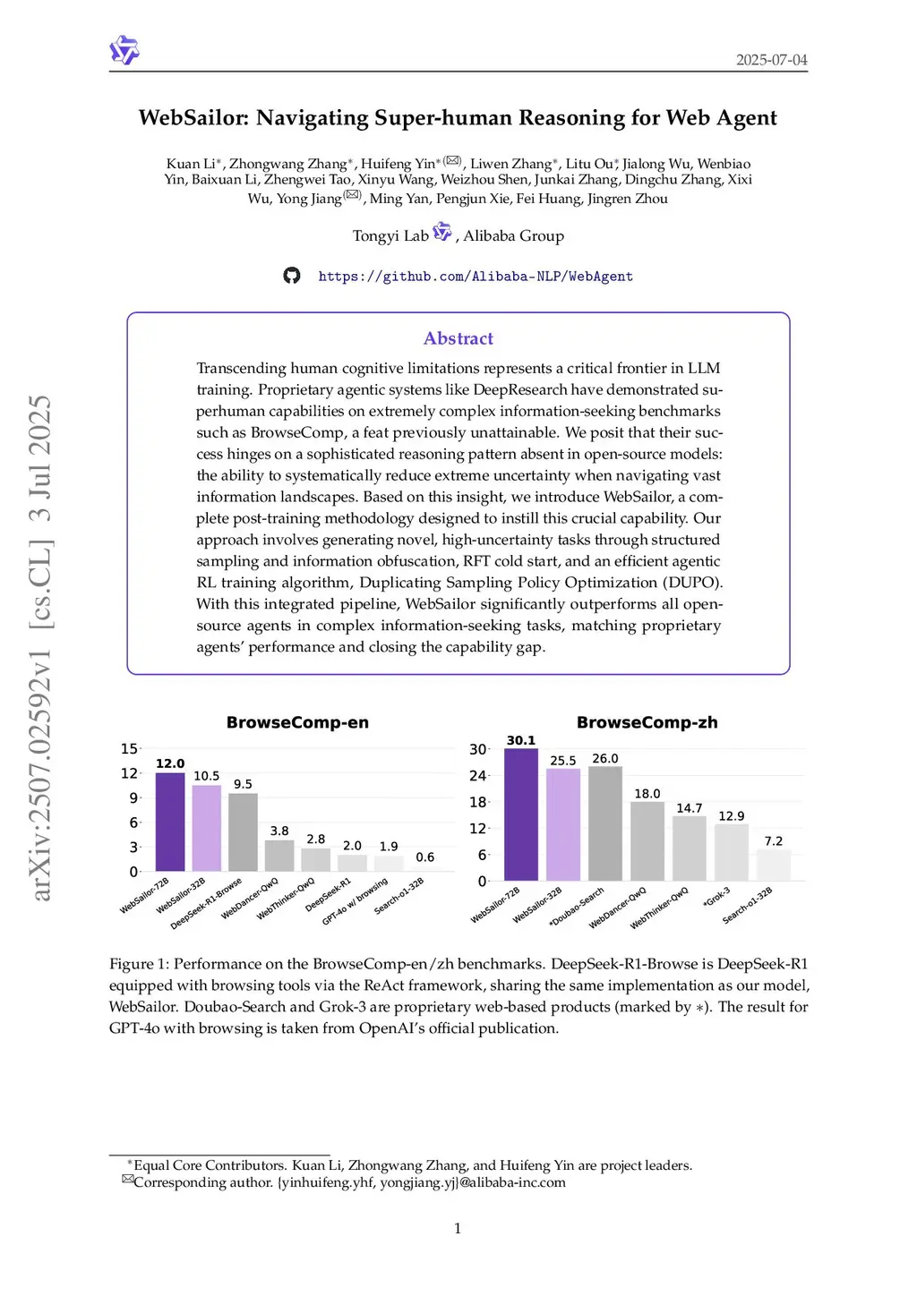 WebSailor: Navigating Super-human Reasoning for Web Agent
