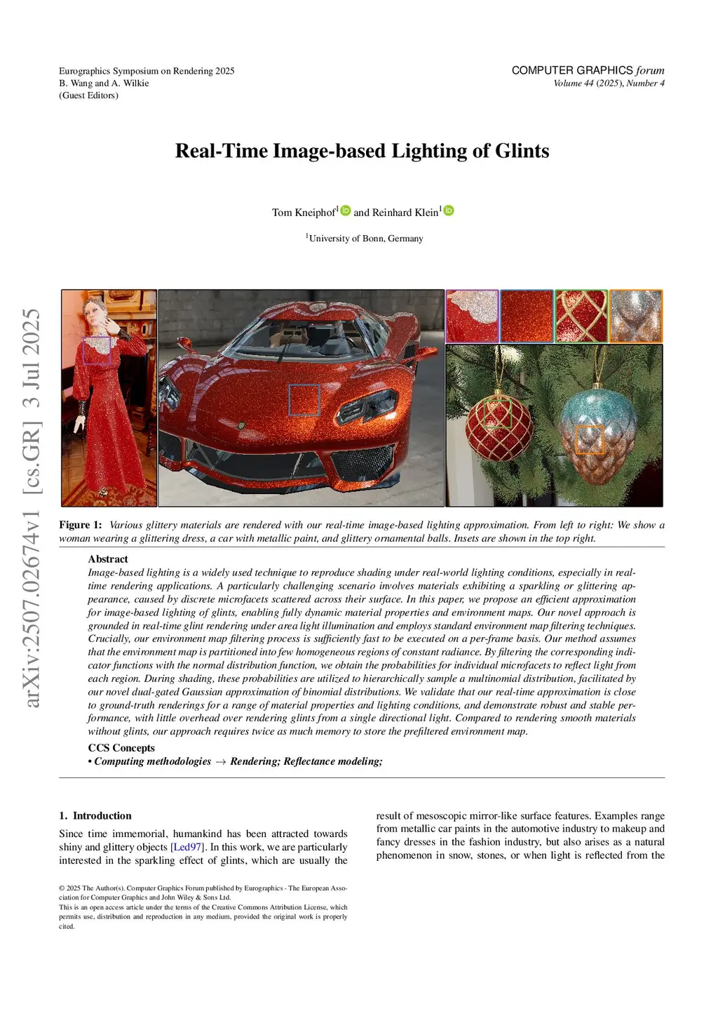 Image-based lighting is a widely used technique to reproduce shading under real-world lighting conditions, especially in real-time rendering applications. A particularly challenging scenario involves materials exhibiting a sparkling or glittering appearance, caused by discrete microfacets scattered across their surface. In this paper, we propose an efficient approximation for image-based lighting of glints, enabling fully dynamic material properties and environment maps. Our novel approach is grounded in real-time glint rendering under area light illumination and employs standard environment map filtering techniques. Crucially, our environment map filtering process is sufficiently fast to be executed on a per-frame basis. Our method assumes that the environment map is partitioned into few homogeneous regions of constant radiance. By filtering the corresponding indicator functions with the normal distribution function, we obtain the probabilities for individual microfacets to reflect light from each region. During shading, these probabilities are utilized to hierarchically sample a multinomial distribution, facilitated by our novel dual-gated Gaussian approximation of binomial distributions. We validate that our real-time approximation is close to ground-truth renderings for a range of material properties and lighting conditions, and demonstrate robust and stable performance, with little overhead over rendering glints from a single directional light. Compared to rendering smooth materials without glints, our approach requires twice as much memory to store the prefiltered environment map.
