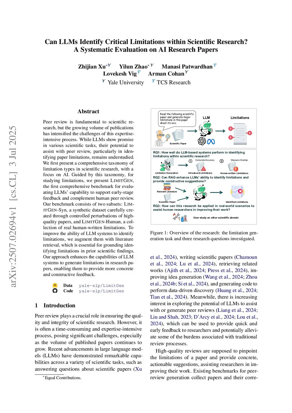 Can LLMs Identify Critical Limitations within Scientific Research? A Systematic Evaluation on AI Research Papers