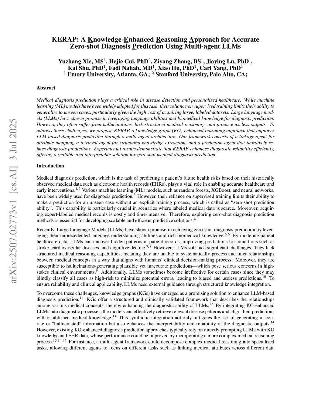KERAP: A Knowledge-Enhanced Reasoning Approach for Accurate Zero-shot Diagnosis Prediction Using Multi-agent LLMs