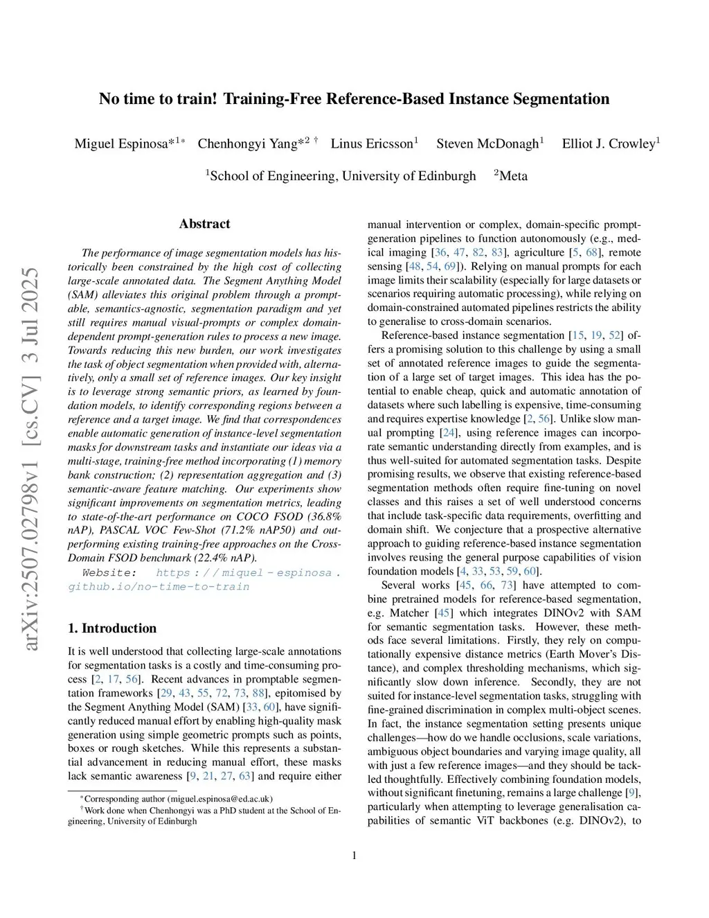 No time to train! Training-Free Reference-Based Instance Segmentation