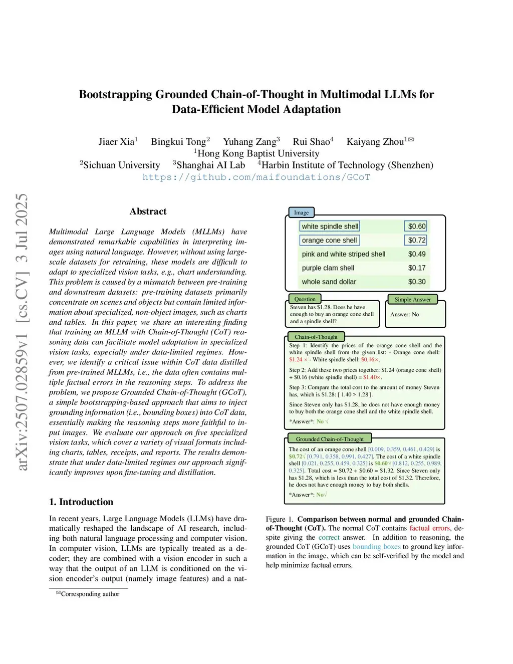 Bootstrapping Grounded Chain-of-Thought in Multimodal LLMs for Data-Efficient Model Adaptation