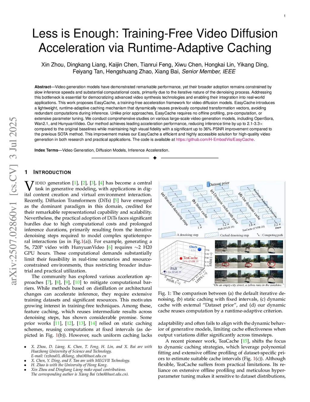 Less is Enough: Training-Free Video Diffusion Acceleration via Runtime-Adaptive Caching