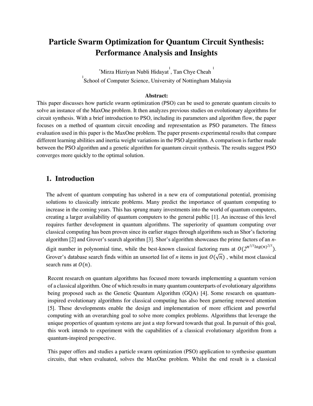 Particle Swarm Optimization for Quantum Circuit Synthesis: Performance Analysis and Insights