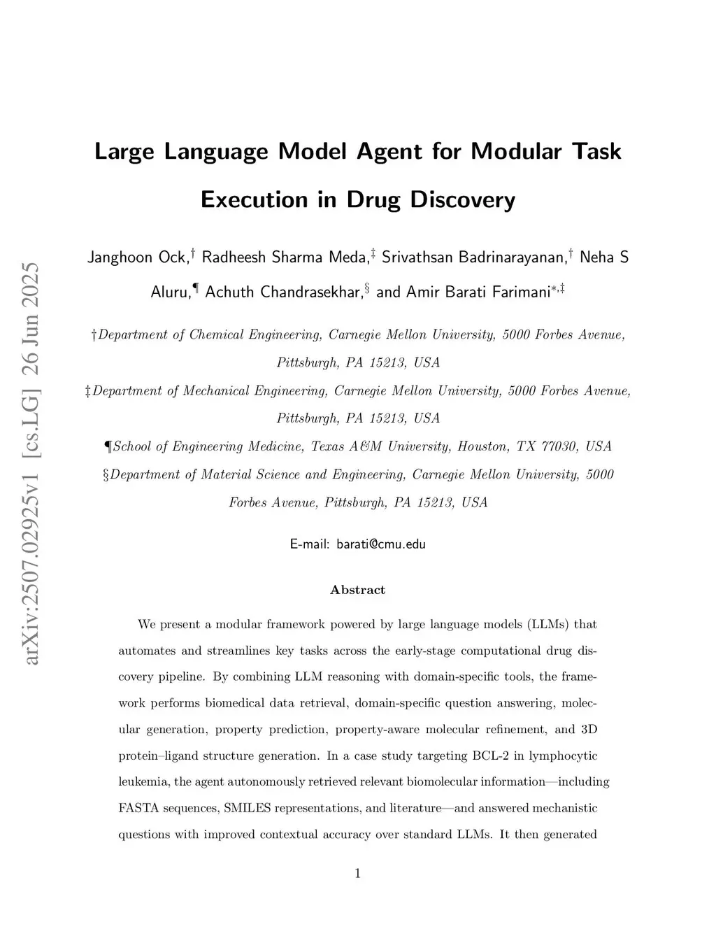 Large Language Model Agent for Modular Task Execution in Drug Discovery