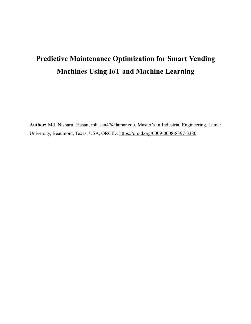 Predictive Maintenance Optimization for Smart Vending Machines Using IoT and Machine Learning