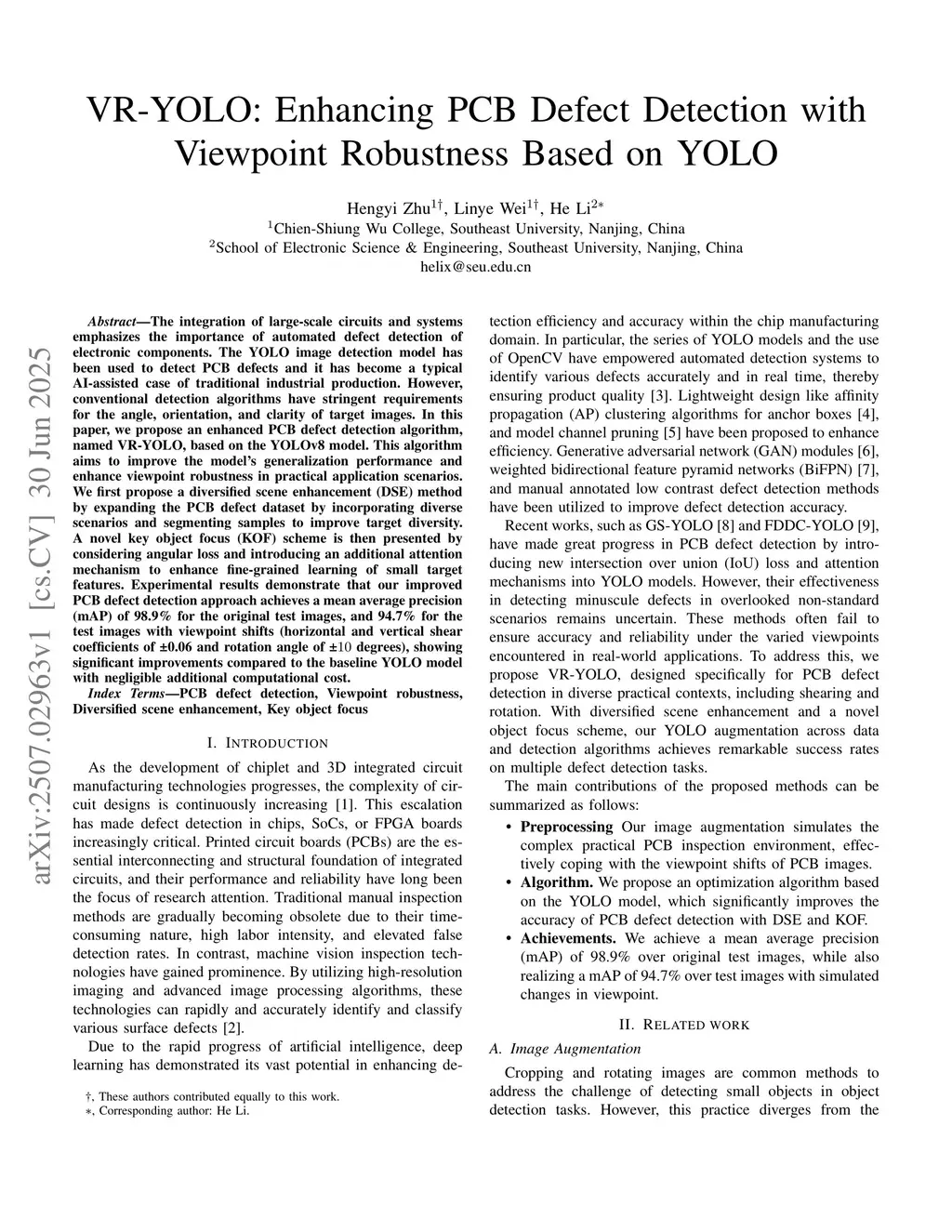 VR-YOLO: Enhancing PCB Defect Detection with Viewpoint Robustness Based on YOLO