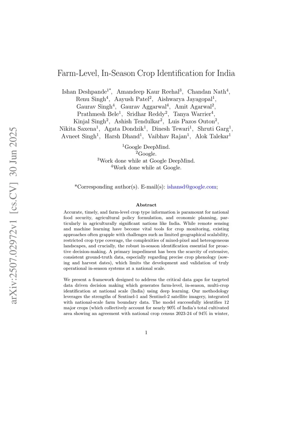 Farm-Level, In-Season Crop Identification for India