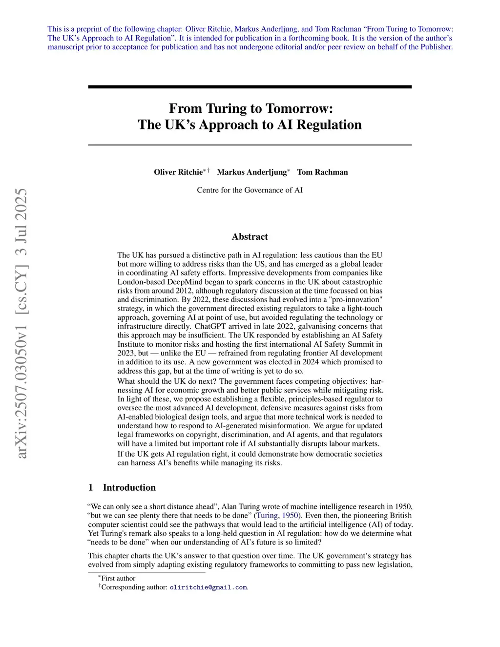 From Turing to Tomorrow: The UK's Approach to AI Regulation