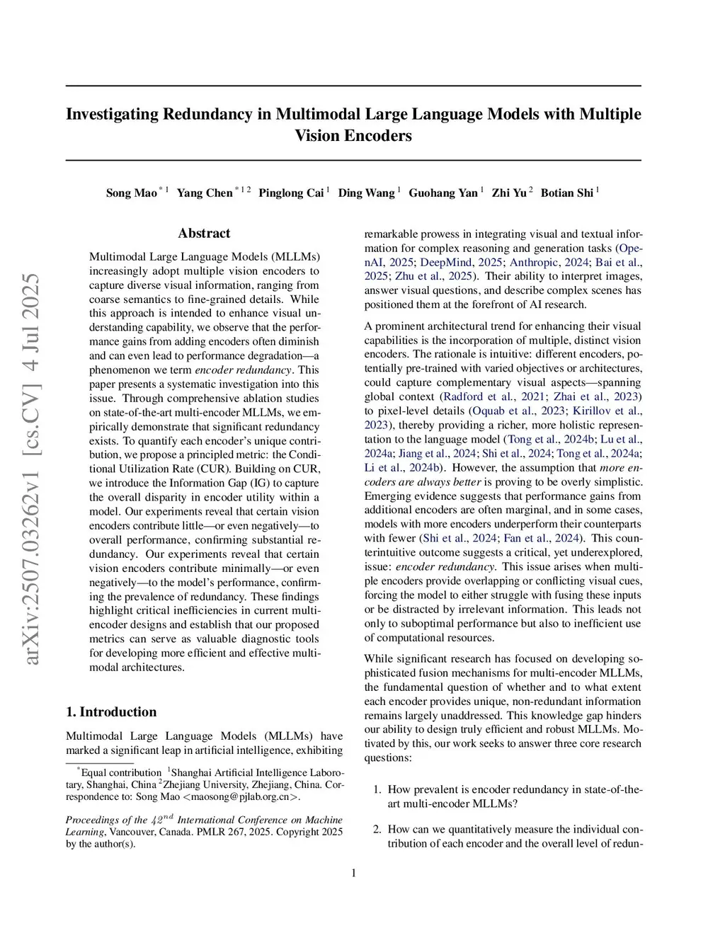 Recent multimodal large language models (MLLMs) increasingly integrate multiple vision encoders to improve performance on various benchmarks, assuming that diverse pretraining objectives yield complementary visual signals. However, we show this assumption often fails in practice. Through systematic encoder masking across representative multi encoder MLLMs, we find that performance typically degrades gracefully and sometimes even improves when selected encoders are masked, revealing pervasive encoder redundancy. To quantify this effect, we introduce two principled metrics: the Conditional Utilization Rate (CUR), which measures an encoders marginal contribution in the presence of others, and the Information Gap (IG), which captures heterogeneity in encoder utility within a model. Using these tools, we observe (i) strong specialization on tasks like OCR and Chart, where a single encoder can dominate with a CUR greater than 90%, (ii) high redundancy on general VQA and knowledge-based tasks, where encoders are largely interchangeable, (iii) instances of detrimental encoders with negative CUR. Notably, masking specific encoders can yield up to 16% higher accuracy on a specific task category and 3.6% overall performance boost compared to the fullthis http URL, single and dual encoder variants recover over 90% of baseline on most non OCR tasks. Our analysis challenges the more encoders are better heuristic in MLLMs and provides actionable diagnostics for developing more efficient and effective multimodal architectures.