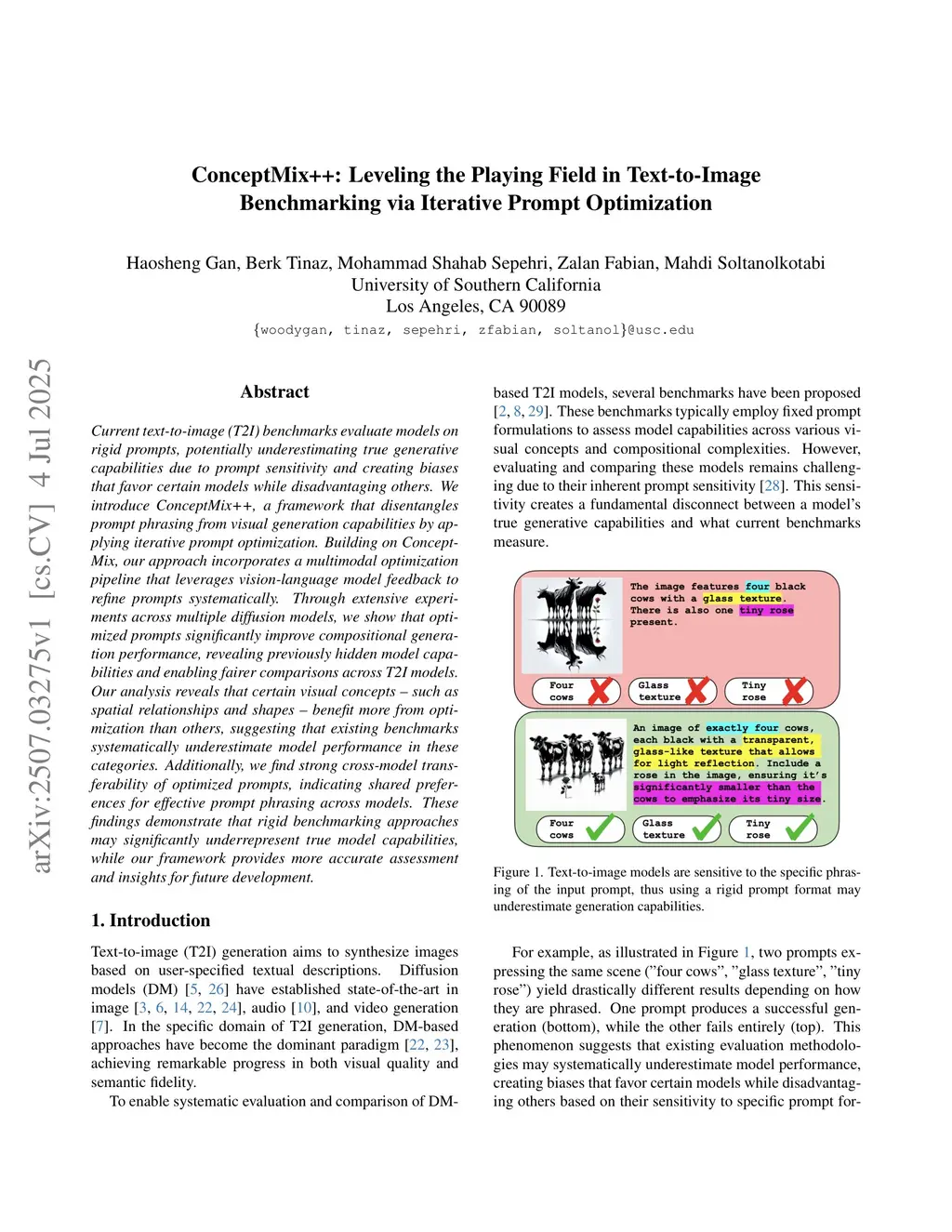 Current text-to-image (T2I) benchmarks evaluate models on rigid prompts, potentially underestimating true generative capabilities due to prompt sensitivity and creating biases that favor certain models while disadvantaging others. We introduce ConceptMix++, a framework that disentangles prompt phrasing from visual generation capabilities by applying iterative prompt optimization. Building on ConceptMix, our approach incorporates a multimodal optimization pipeline that leverages vision-language model feedback to refine prompts systematically. Through extensive experiments across multiple diffusion models, we show that optimized prompts significantly improve compositional generation performance, revealing previously hidden model capabilities and enabling fairer comparisons across T2I models. Our analysis reveals that certain visual concepts -- such as spatial relationships and shapes -- benefit more from optimization than others, suggesting that existing benchmarks systematically underestimate model performance in these categories. Additionally, we find strong cross-model transferability of optimized prompts, indicating shared preferences for effective prompt phrasing across models. These findings demonstrate that rigid benchmarking approaches may significantly underrepresent true model capabilities, while our framework provides more accurate assessment and insights for future development.