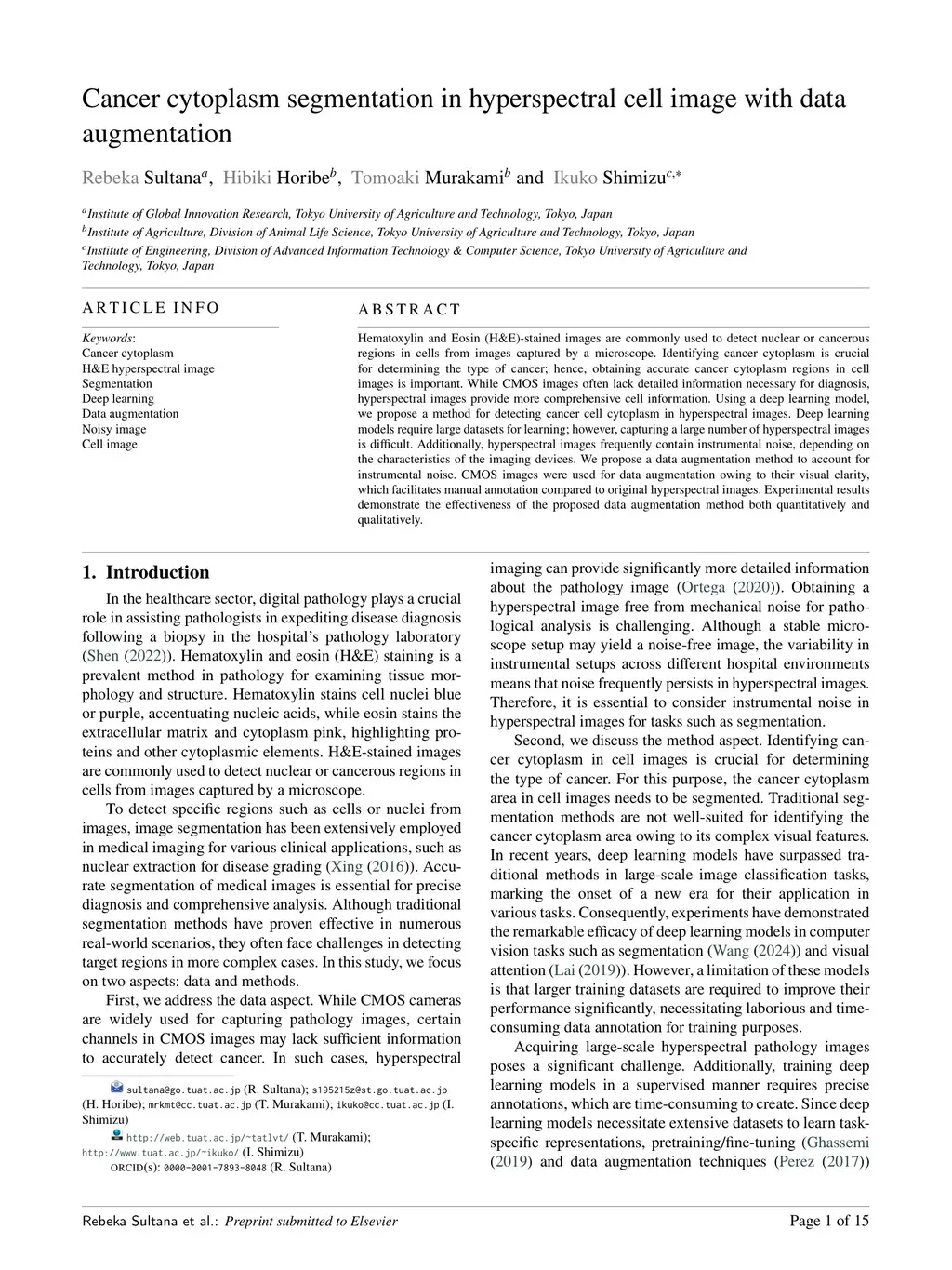 Cancer cytoplasm segmentation in hyperspectral cell image with data augmentation