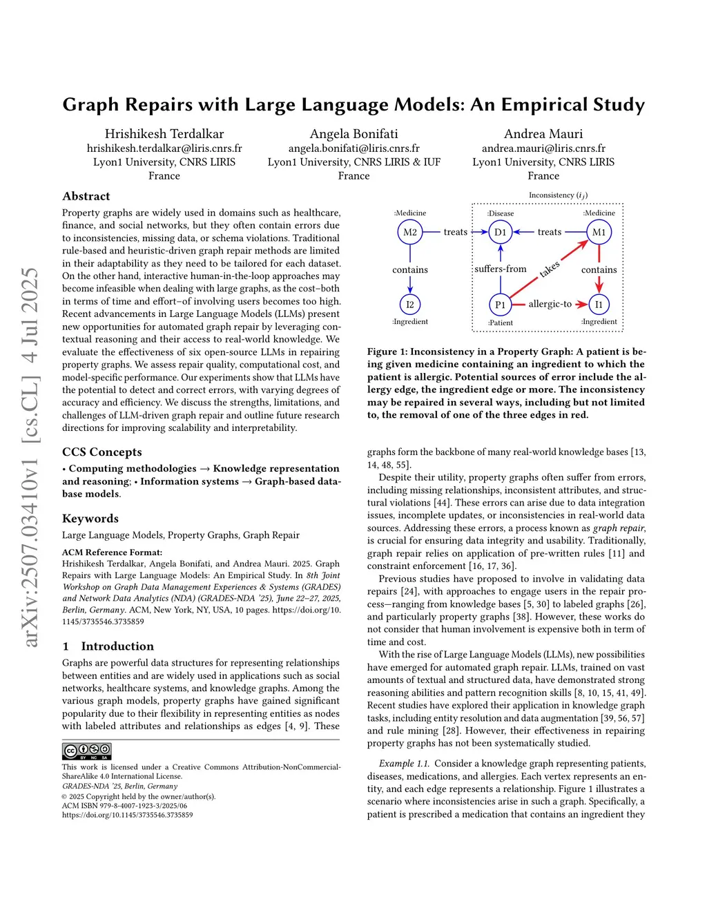 Graph Repairs with Large Language Models: An Empirical Study
