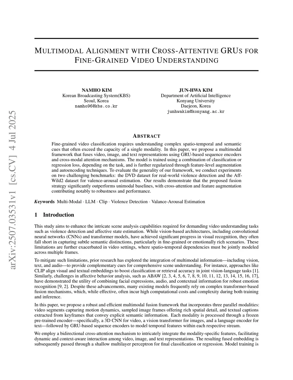 Multimodal Alignment with Cross-Attentive GRUs for Fine-Grained Video Understanding