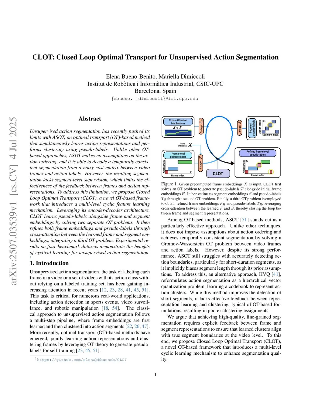 CLOT: Closed Loop Optimal Transport for Unsupervised Action Segmentation