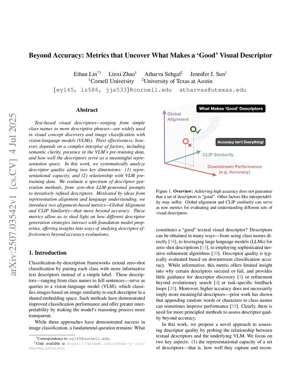 Text-based visual descriptors--ranging from simple class names to more descriptive phrases--are widely used in visual concept discovery and image classification with vision-language models (VLMs). Their effectiveness, however, depends on a complex interplay of factors, including semantic clarity, presence in the VLM's pre-training data, and how well the descriptors serve as a meaningful representation space. In this work, we systematically analyze descriptor quality along two key dimensions: (1) representational capacity, and (2) relationship with VLM pre-training data. We evaluate a spectrum of descriptor generation methods, from zero-shot LLM-generated prompts to iteratively refined descriptors. Motivated by ideas from representation alignment and language understanding, we introduce two alignment-based metrics--Global Alignment and CLIP Similarity--that move beyond accuracy. These metrics shed light on how different descriptor generation strategies interact with foundation model properties, offering new ways to study descriptor effectiveness beyond accuracy evaluations.