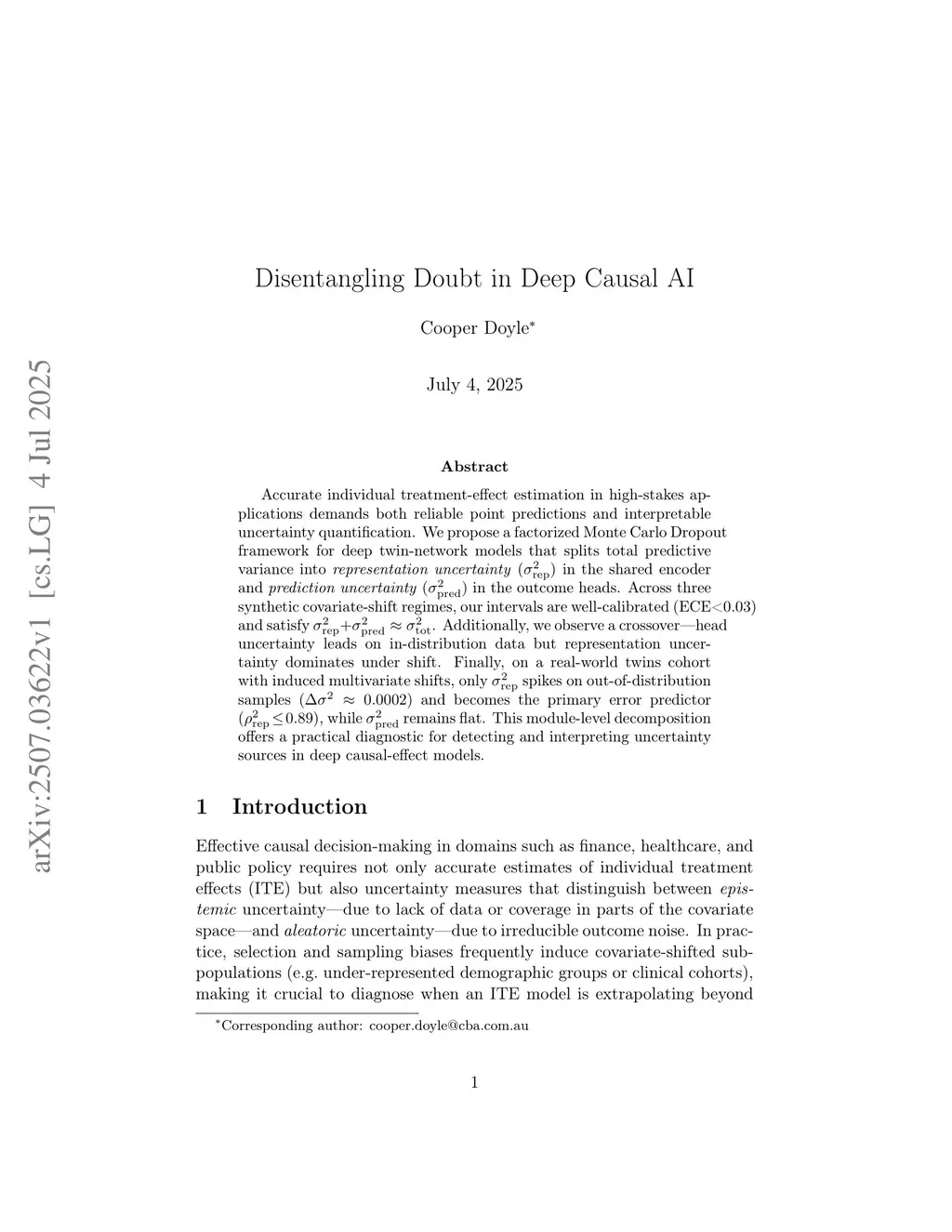 Disentangling Doubt in Deep Causal AI
