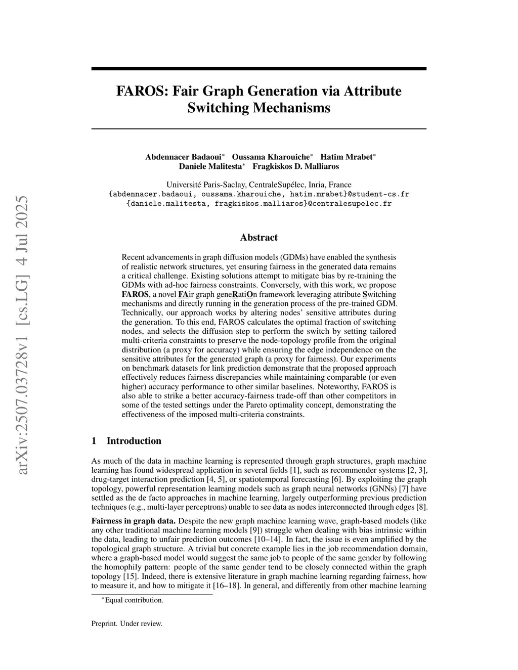 FAROS: Fair Graph Generation via Attribute Switching Mechanisms