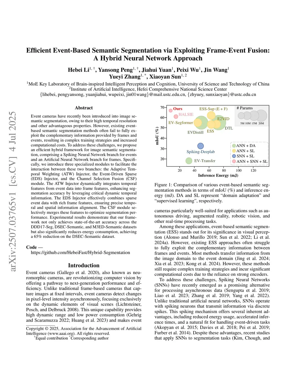 Efficient Event-Based Semantic Segmentation via Exploiting Frame-Event Fusion: A Hybrid Neural Network Approach