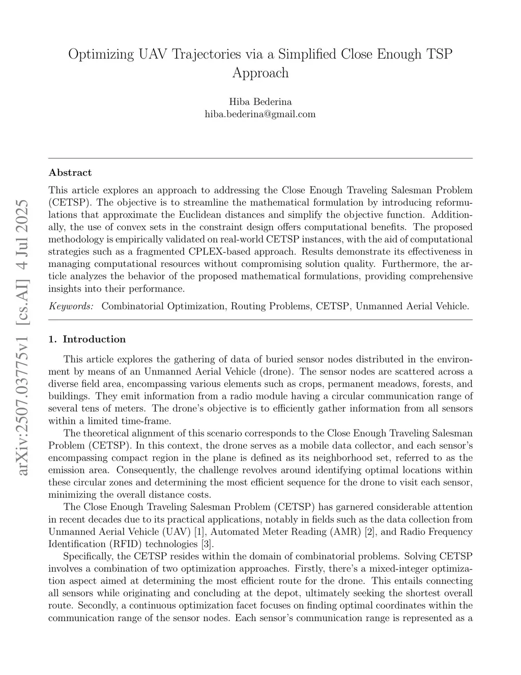 This article explores an approach to addressing the Close Enough Traveling Salesman Problem (CETSP). The objective is to streamline the mathematical formulation by introducing reformulations that approximate the Euclidean distances and simplify the objective function. Additionally, the use of convex sets in the constraint design offers computational benefits. The proposed methodology is empirically validated on real-world CETSP instances, with the aid of computational strategies such as a fragmented CPLEX-based approach. Results demonstrate its effectiveness in managing computational resources without compromising solution quality. Furthermore, the article analyzes the behavior of the proposed mathematical formulations, providing comprehensive insights into their performance.