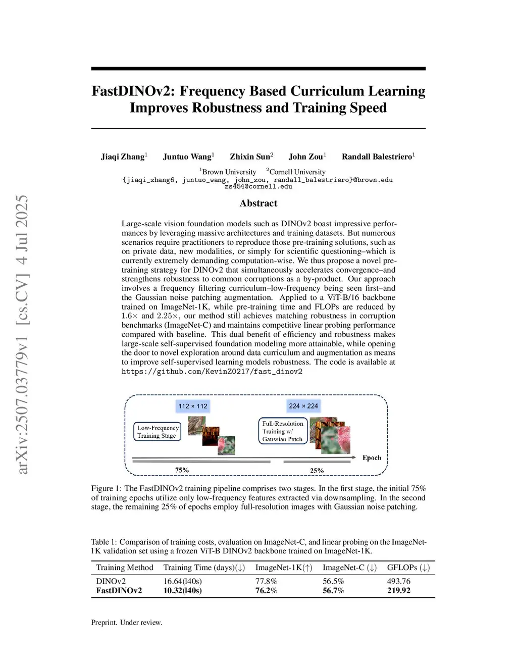 FastDINOv2: Frequency Based Curriculum Learning Improves Robustness and Training Speed
