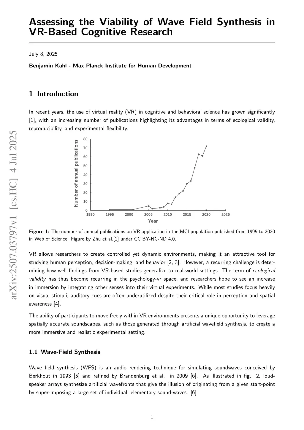 Assessing the Viability of Wave Field Synthesis in VR-Based Cognitive Research