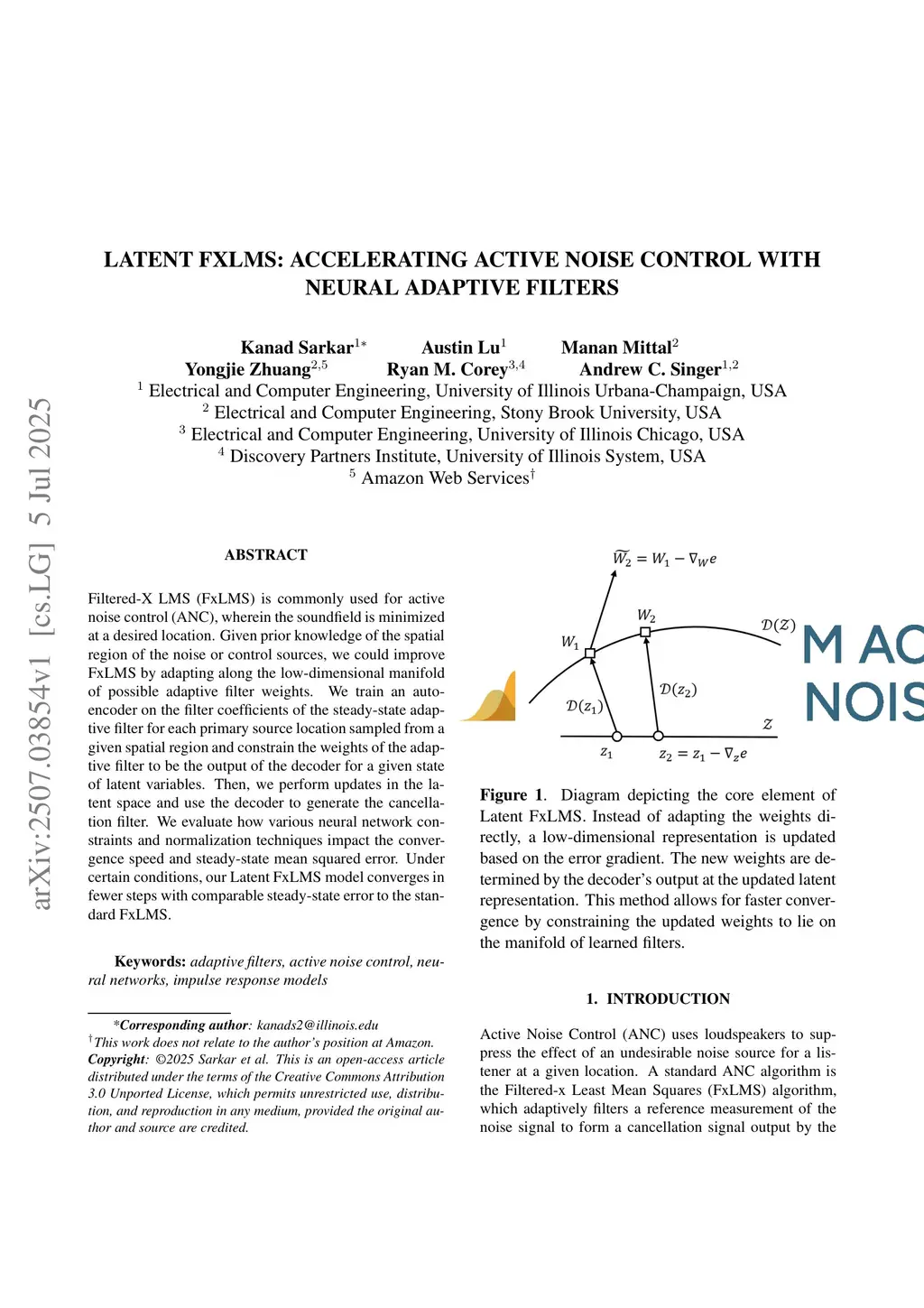 Filtered-X LMS (FxLMS) is commonly used for active noise control (ANC), wherein the soundfield is minimized at a desired location. Given prior knowledge of the spatial region of the noise or control sources, we could improve FxLMS by adapting along the low-dimensional manifold of possible adaptive filter weights. We train an auto-encoder on the filter coefficients of the steady-state adaptive filter for each primary source location sampled from a given spatial region and constrain the weights of the adaptive filter to be the output of the decoder for a given state of latent variables. Then, we perform updates in the latent space and use the decoder to generate the cancellation filter. We evaluate how various neural network constraints and normalization techniques impact the convergence speed and steady-state mean squared error. Under certain conditions, our Latent FxLMS model converges in fewer steps with comparable steady-state error to the standard FxLMS.