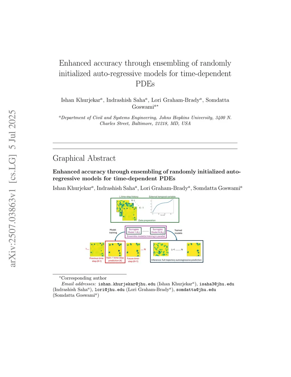 Enhanced accuracy through ensembling of randomly initialized auto-regressive models for time-dependent PDEs