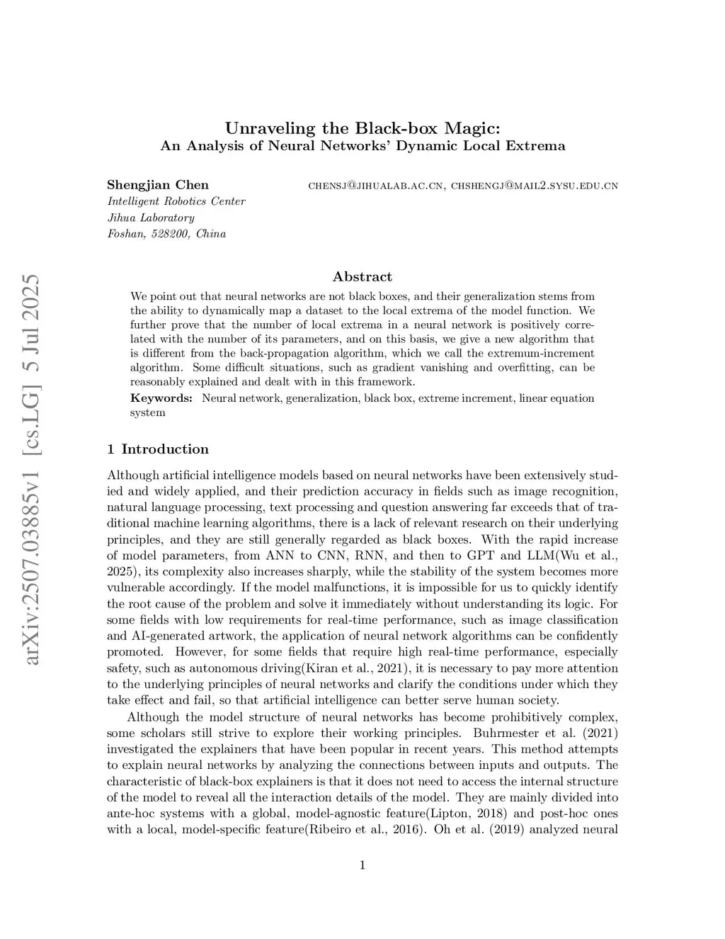 We point out that neural networks are not black boxes, and their generalization stems from the ability to dynamically map a dataset to the extrema of the model function. We further prove that the number of extrema in a neural network is positively correlated with the number of its parameters. We then propose a new algorithm that is significantly different from back-propagation algorithm, which mainly obtains the values of parameters by solving a system of linear equations. Some difficult situations, such as gradient vanishing and overfitting, can be simply explained and dealt with in this framework.