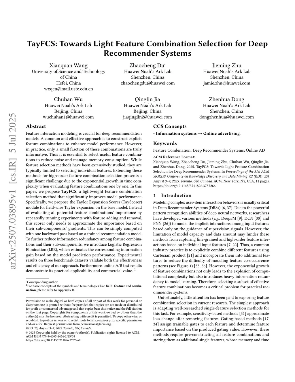 TayFCS: Towards Light Feature Combination Selection for Deep Recommender Systems