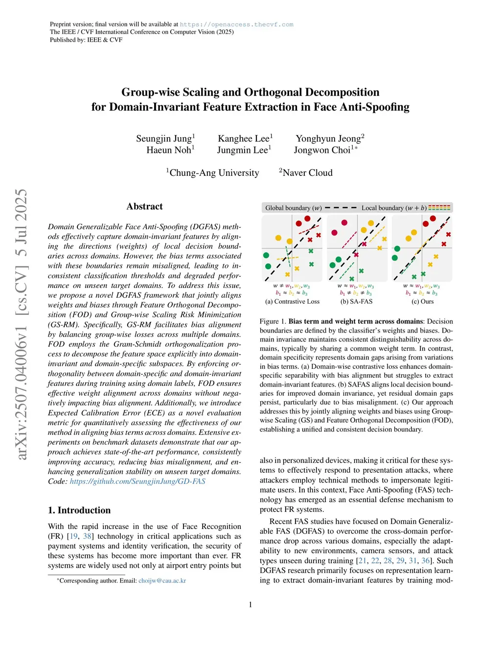 Group-wise Scaling and Orthogonal Decomposition for Domain-Invariant Feature Extraction in Face Anti-Spoofing