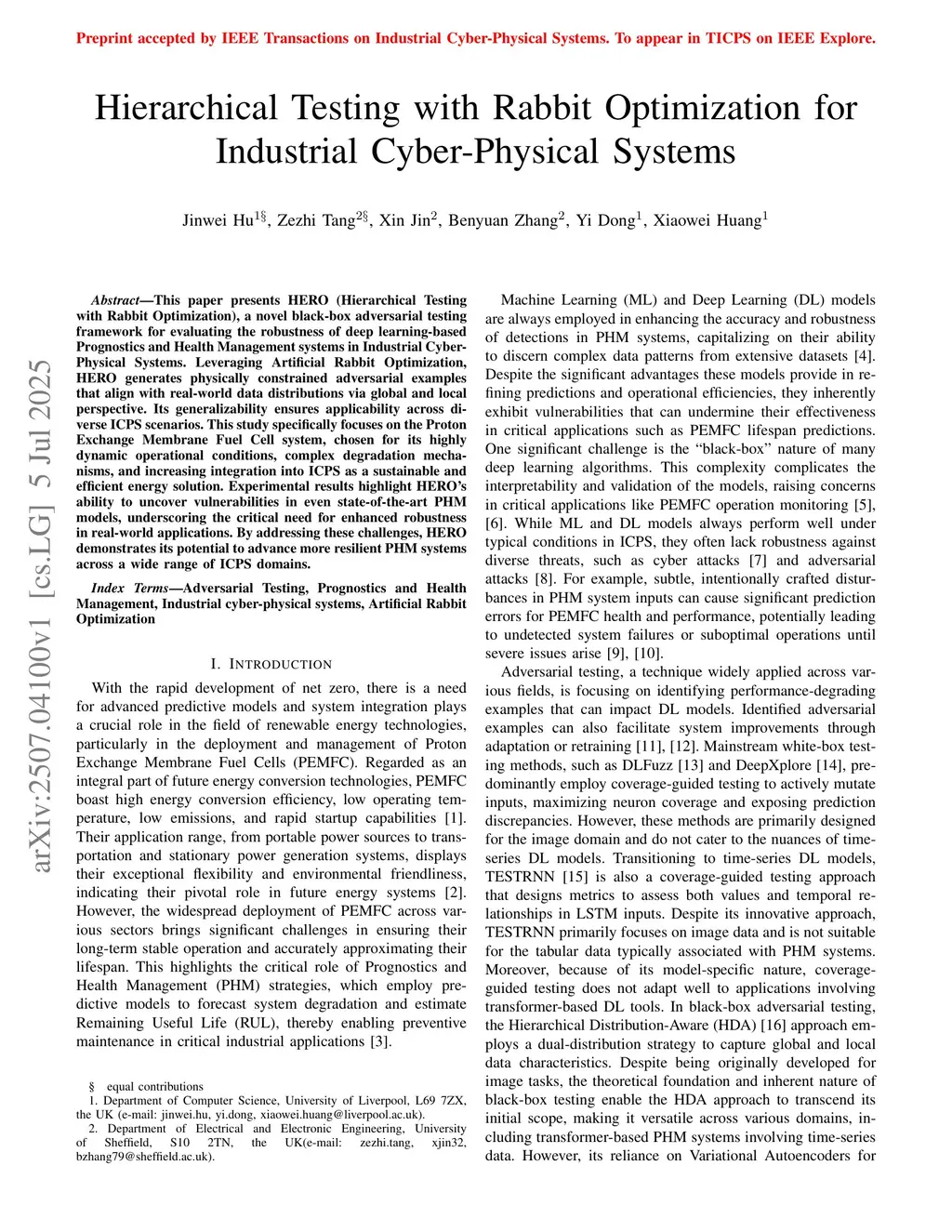 This paper presents HERO (Hierarchical Testing with Rabbit Optimization), a novel black-box adversarial testing framework for evaluating the robustness of deep learning-based Prognostics and Health Management systems in Industrial Cyber-Physical Systems. Leveraging Artificial Rabbit Optimization, HERO generates physically constrained adversarial examples that align with real-world data distributions via global and local perspective. Its generalizability ensures applicability across diverse ICPS scenarios. This study specifically focuses on the Proton Exchange Membrane Fuel Cell system, chosen for its highly dynamic operational conditions, complex degradation mechanisms, and increasing integration into ICPS as a sustainable and efficient energy solution. Experimental results highlight HERO's ability to uncover vulnerabilities in even state-of-the-art PHM models, underscoring the critical need for enhanced robustness in real-world applications. By addressing these challenges, HERO demonstrates its potential to advance more resilient PHM systems across a wide range of ICPS domains.