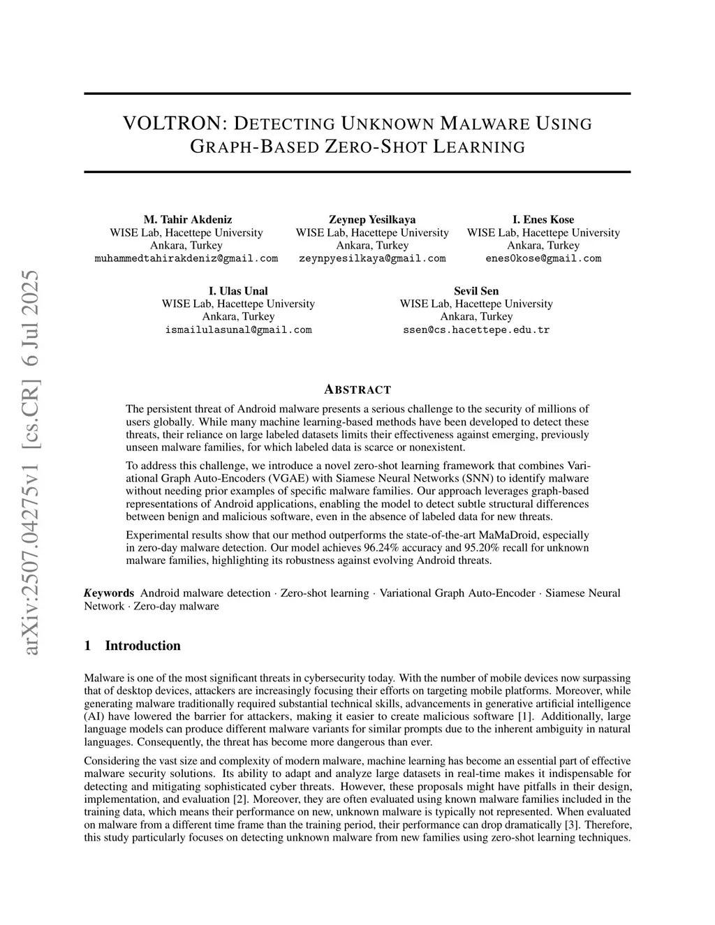 VOLTRON: Detecting Unknown Malware Using Graph-Based Zero-Shot Learning