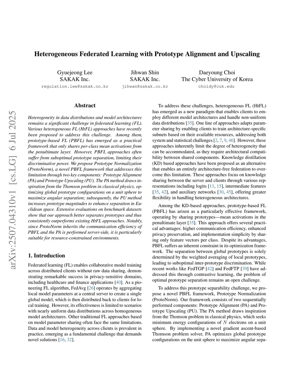 Heterogeneous Federated Learning with Prototype Alignment and Upscaling