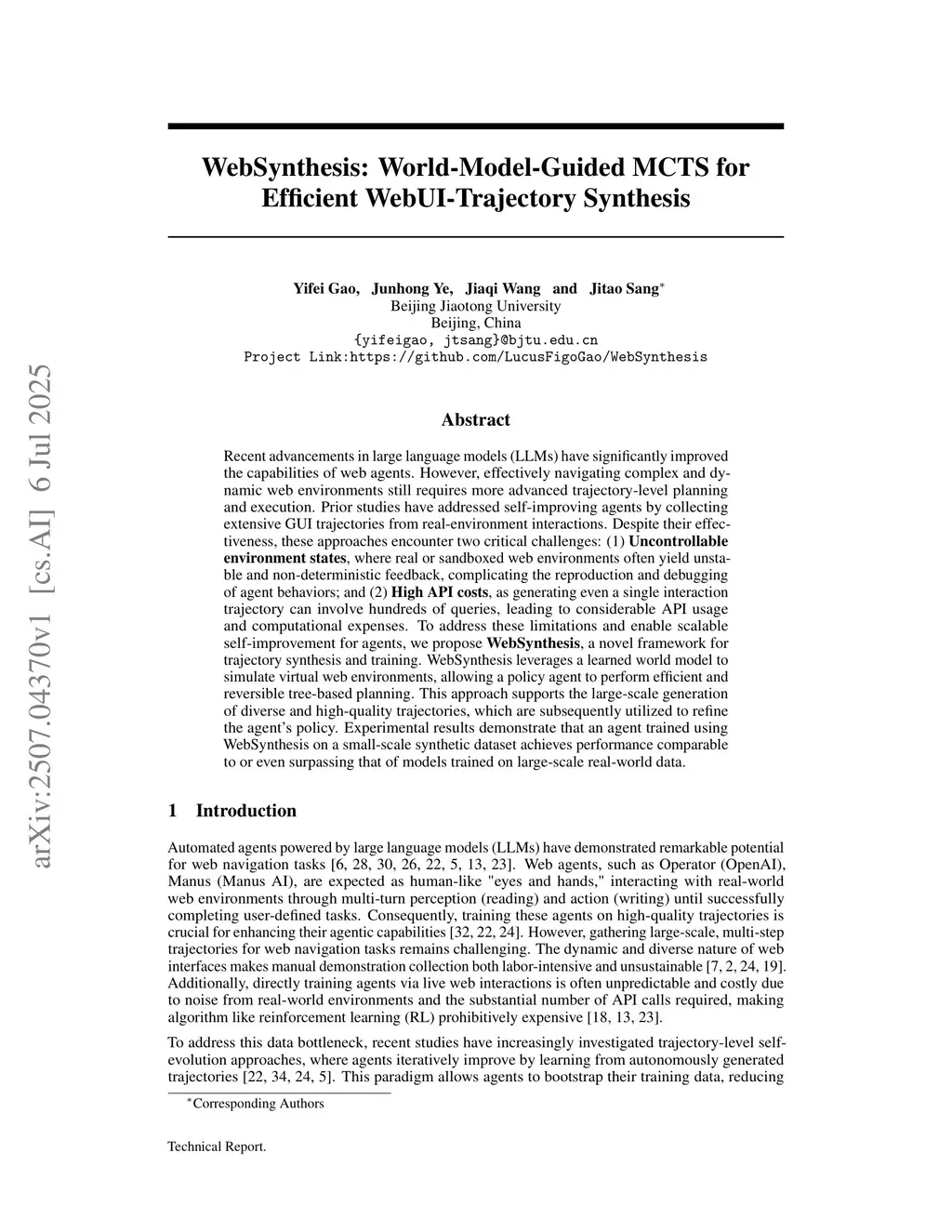 WebSynthesis: World-Model-Guided MCTS for Efficient WebUI-Trajectory Synthesis
