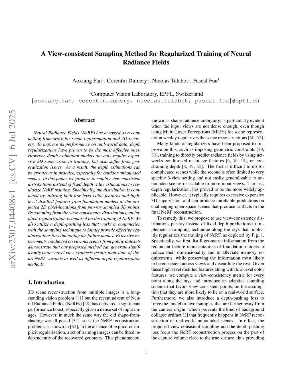 A View-consistent Sampling Method for Regularized Training of Neural Radiance Fields