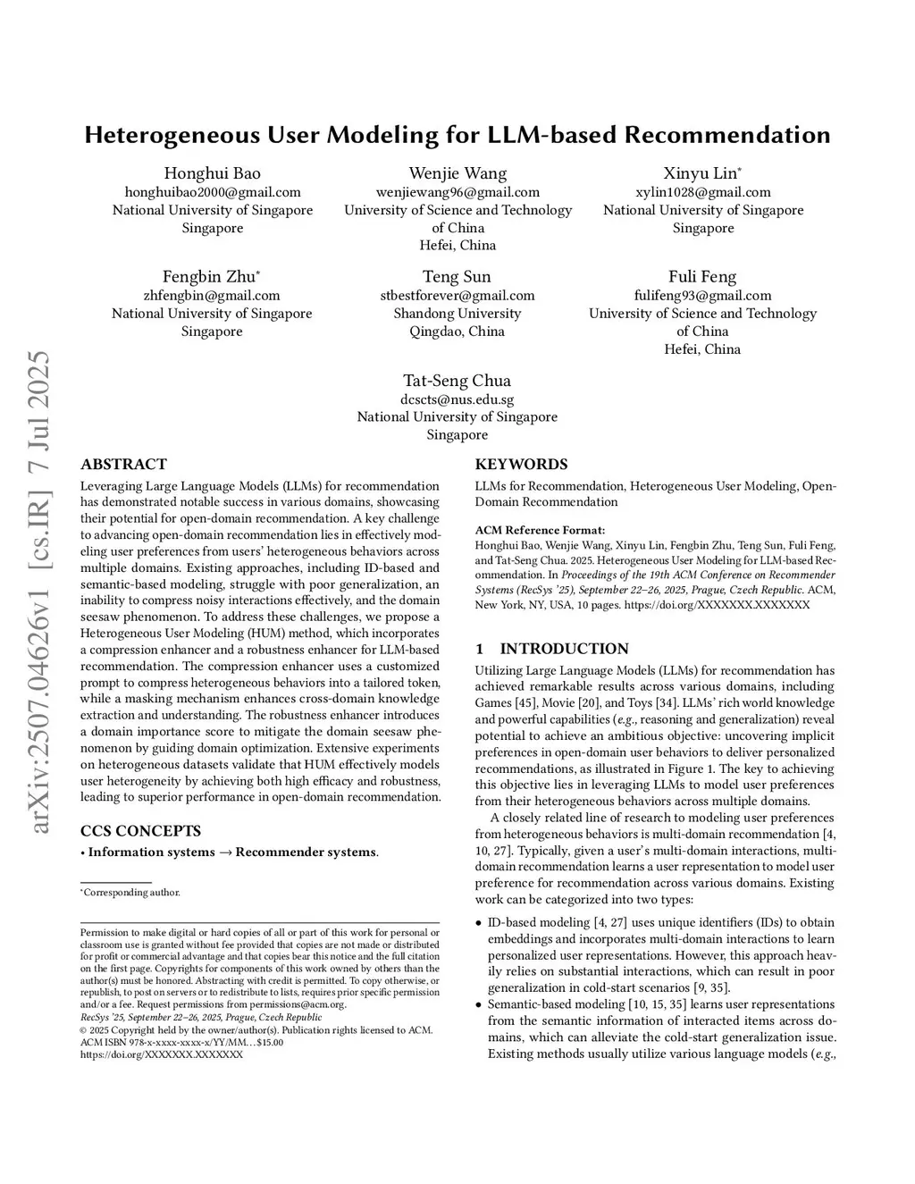 Heterogeneous User Modeling for LLM-based Recommendation