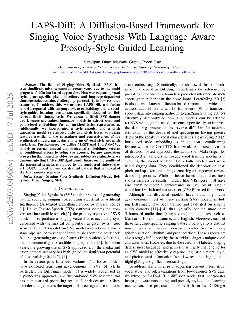 LAPS-Diff: A Diffusion-Based Framework for Singing Voice Synthesis With Language Aware Prosody-Style Guided Learning