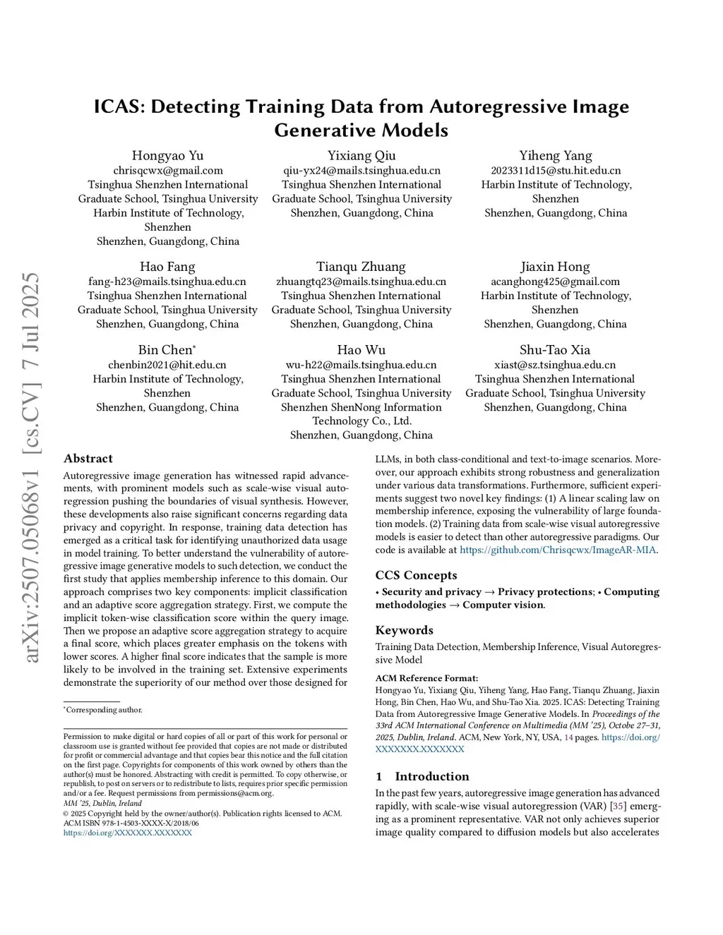 ICAS: Detecting Training Data from Autoregressive Image Generative Models