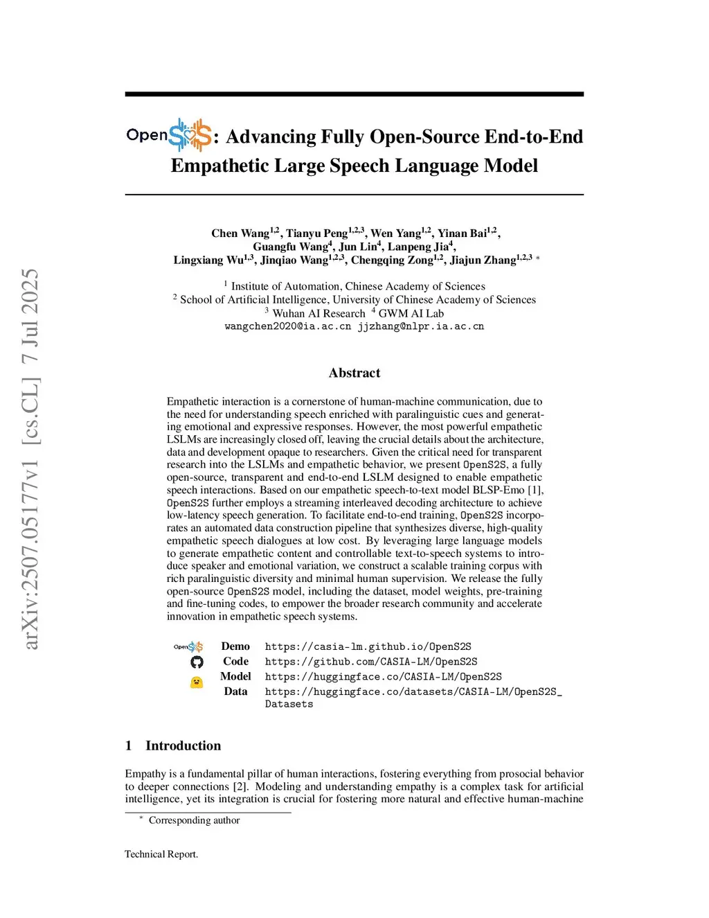 OpenS2S: Advancing Open-Source End-to-End Empathetic Large Speech Language Model