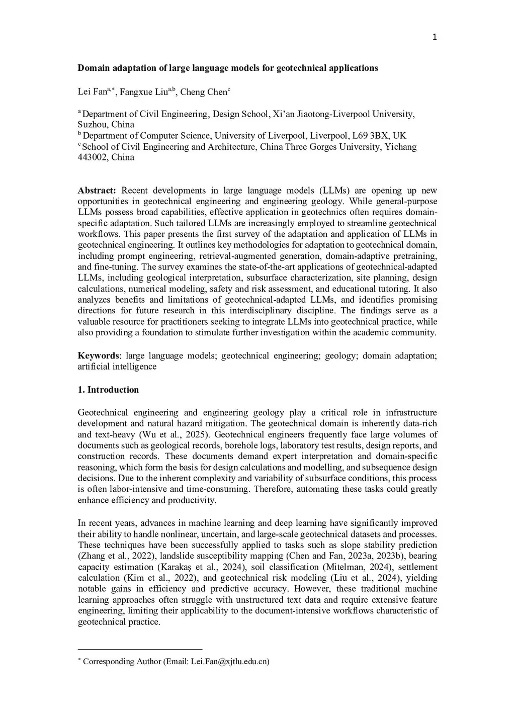 The rapid advancement of large language models (LLMs) is transforming opportunities in geotechnical engineering, where workflows rely on complex, text-rich data. While general-purpose LLMs demonstrate strong reasoning capabilities, their effectiveness in geotechnical applications is constrained by limited exposure to specialized terminology and domain logic. Thus, domain adaptation, tailoring general LLMs for geotechnical use, has become essential. This paper presents the first systematic review of LLM adaptation and application in geotechnical contexts. It critically examines four key adaptation strategies, including prompt engineering, retrieval augmented generation, domain-adaptive pretraining, and fine-tuning, and evaluates their comparative benefits, limitations, and implementation trends. This review synthesizes current applications spanning geological interpretation, subsurface characterization, design analysis, numerical modeling, risk assessment, and geotechnical education. Findings show that domain-adapted LLMs substantially improve reasoning accuracy, automation, and interpretability, yet remain limited by data scarcity, validation challenges, and explainability concerns. Future research directions are also suggested. This review establishes a critical foundation for developing geotechnically literate LLMs and guides researchers and practitioners in advancing the digital transformation of geotechnical engineering.