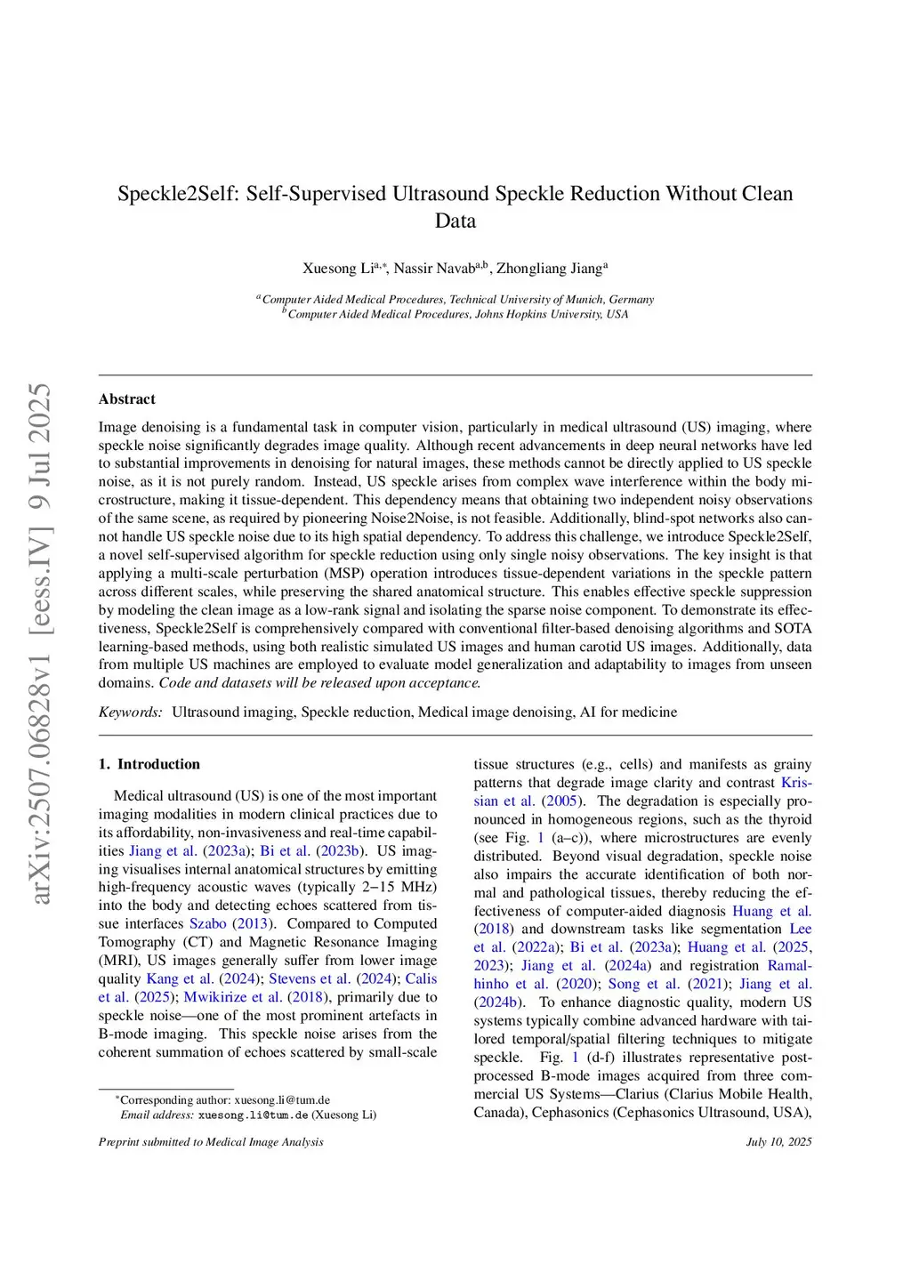 Speckle2Self: Self-Supervised Ultrasound Speckle Reduction Without Clean Data