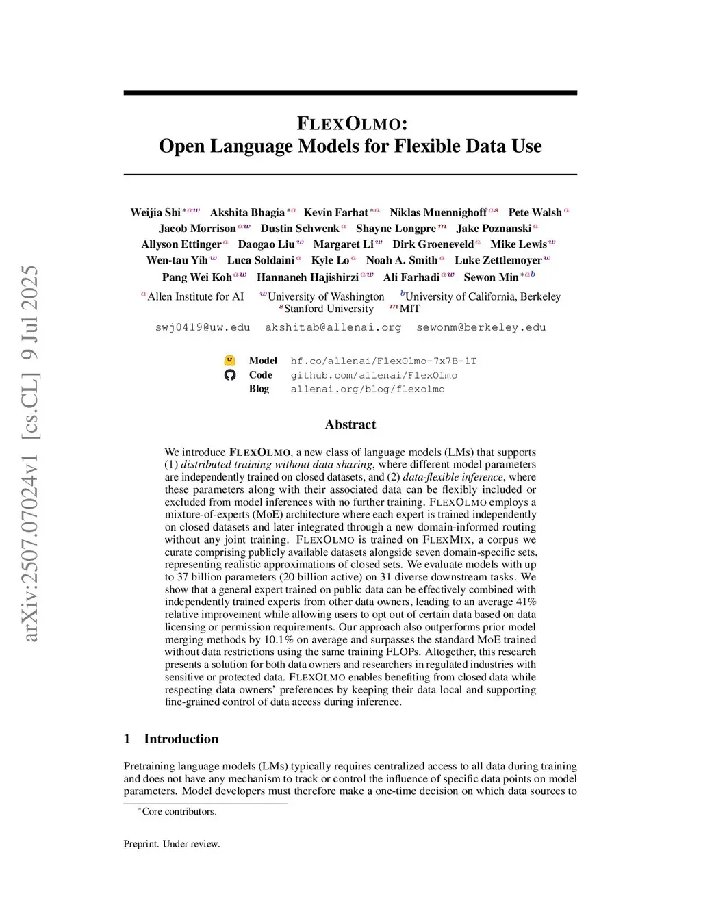 We introduce FlexOlmo, a new class of language models (LMs) that supports (1) distributed training without data sharing, where different model parameters are independently trained on closed datasets, and (2) data-flexible inference, where these parameters along with their associated data can be flexibly included or excluded from model inferences with no further training. FlexOlmo employs a mixture-of-experts (MoE) architecture where each expert is trained independently on closed datasets and later integrated through a new domain-informed routing without any joint training. FlexOlmo is trained on FlexMix, a corpus we curate comprising publicly available datasets alongside seven domain-specific sets, representing realistic approximations of closed sets. We evaluate models with up to 37 billion parameters (20 billion active) on 31 diverse downstream tasks. We show that a general expert trained on public data can be effectively combined with independently trained experts from other data owners, leading to an average 41% relative improvement while allowing users to opt out of certain data based on data licensing or permission requirements. Our approach also outperforms prior model merging methods by 10.1% on average and surpasses the standard MoE trained without data restrictions using the same training FLOPs. Altogether, this research presents a solution for both data owners and researchers in regulated industries with sensitive or protected data. FlexOlmo enables benefiting from closed data while respecting data owners' preferences by keeping their data local and supporting fine-grained control of data access during inference.