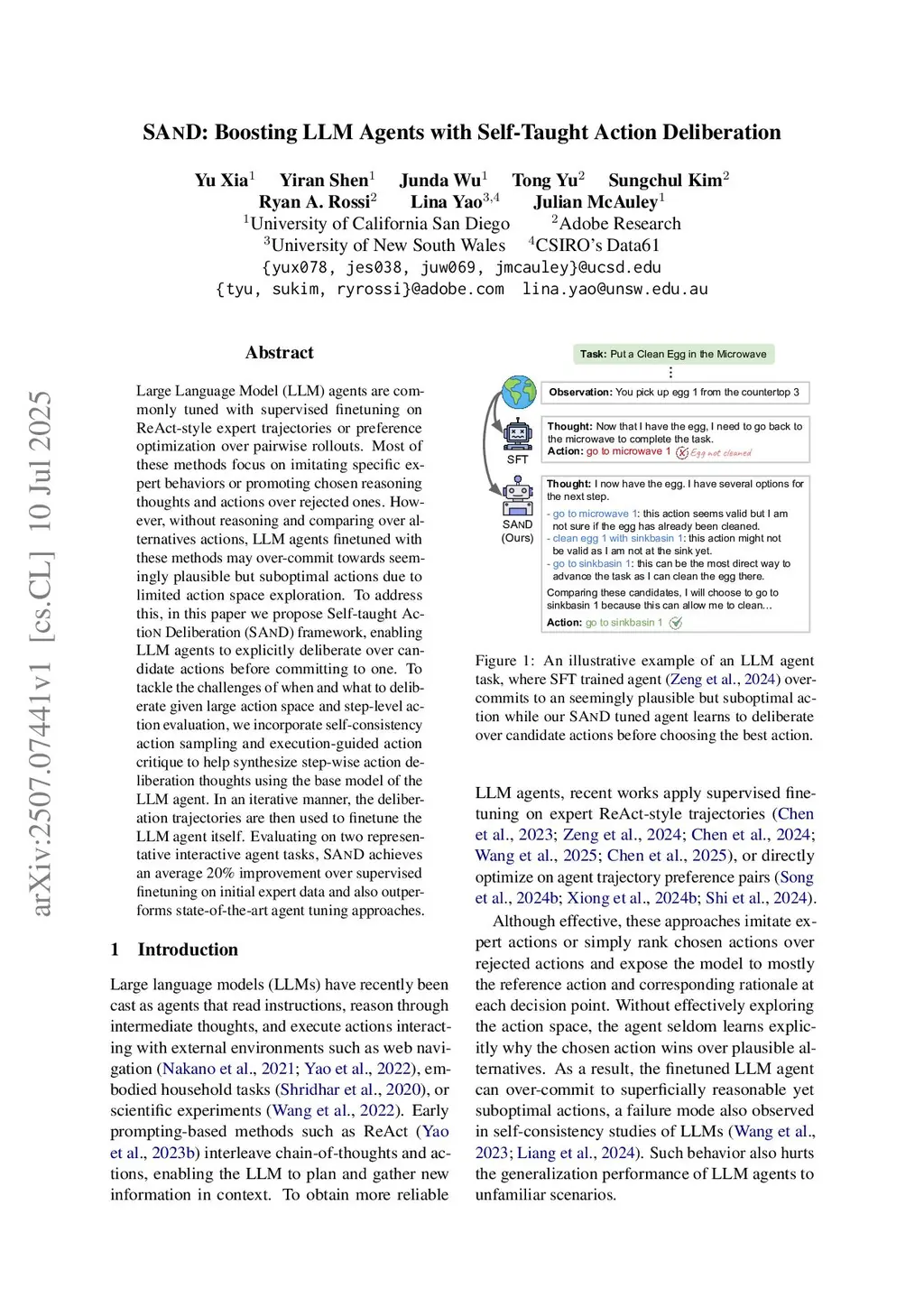 SAND: Boosting LLM Agents with Self-Taught Action Deliberation