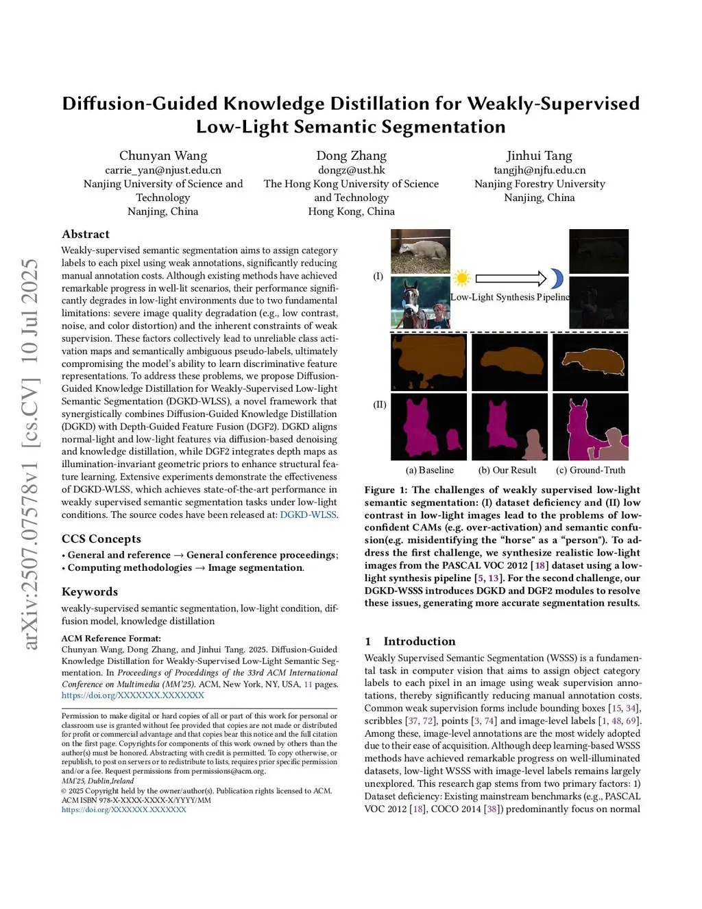 Diffusion-Guided Knowledge Distillation for Weakly-Supervised Low-Light Semantic Segmentation
