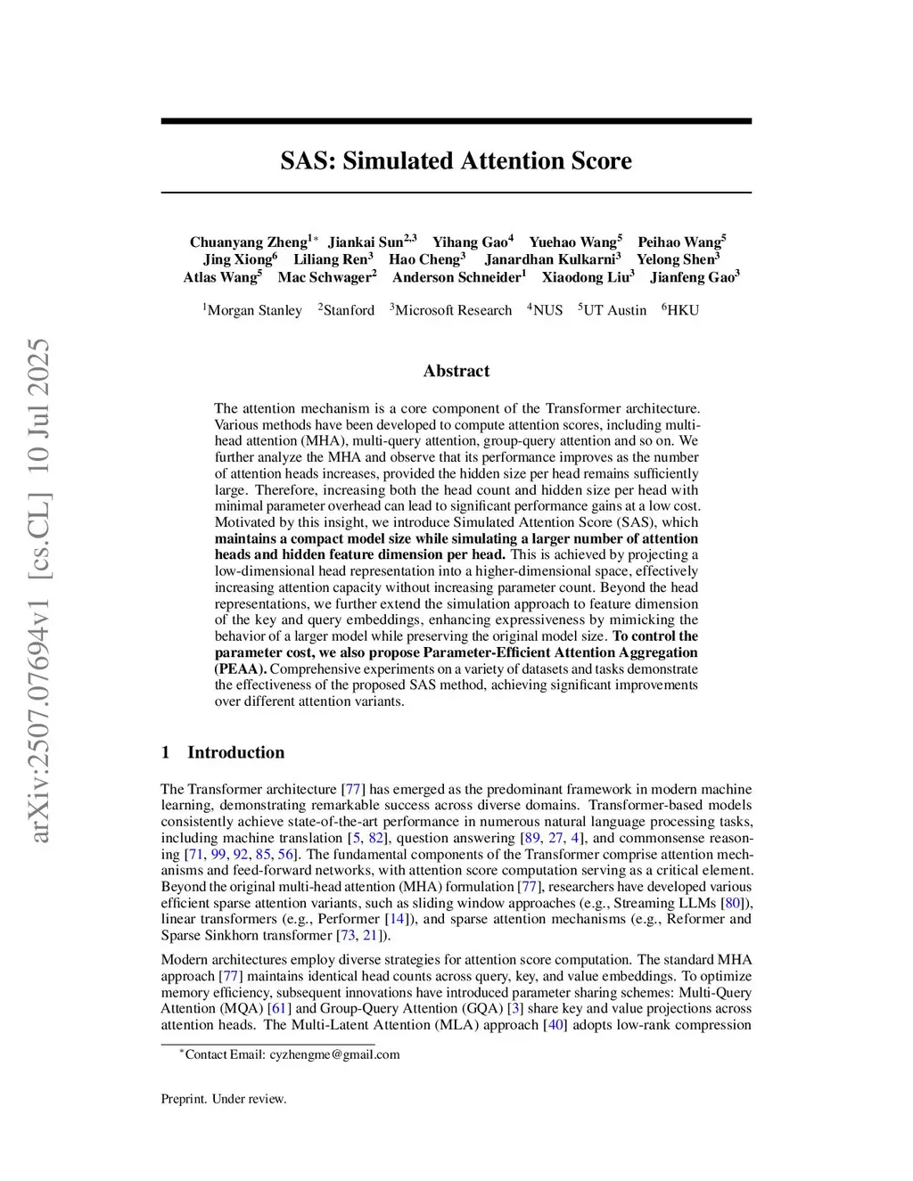 SAS: Simulated Attention Score